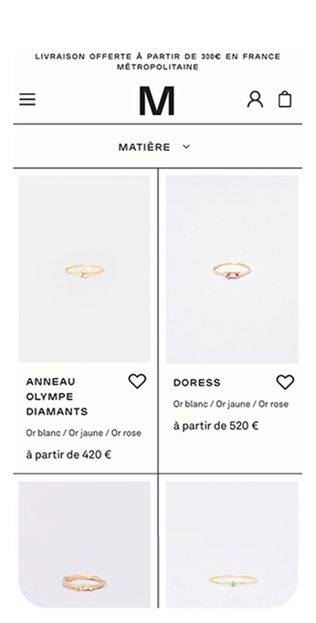 In this new graphic setting, we supported the jewelers in technical developments, user journey optimization and the e-marketing strategy of this custom Magento 2 e-commerce.